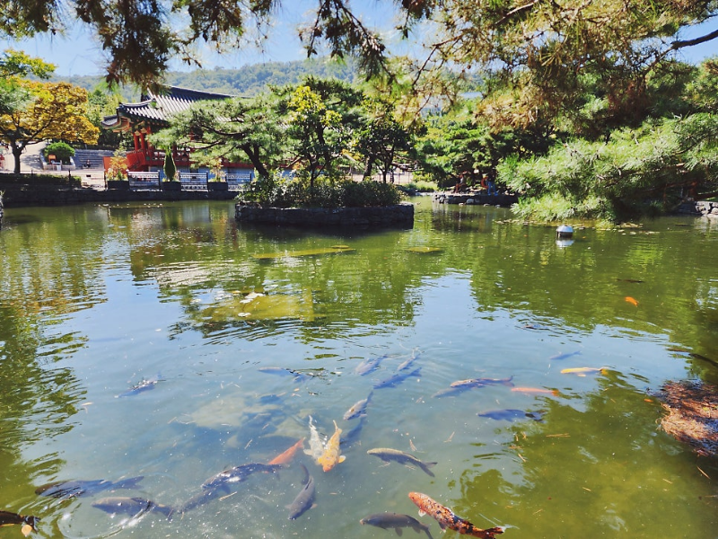 한옥마을에서 빠질 수 없는 또 하나의 매력은 바로 연못이에요. 연못앞 벤치에 앉아 잠시 물멍 즐기고 잉어와 오리도 보고 고요한 분위기 속에서 여유로운 시간을 보내기에 완벽한 장소입니다. 잠시 벤치에 앉아 물멍 즐기기에도 좋고 연못 주변의 길을따라 산책하며 자연과 함께하는 시간을 가지면, 일상의 스트레스가 사라지고 마음까지 차분해집니다. 특히, 연못에 비친 한옥의 모습은 정말 아름다워, 사진 찍기에 좋은 포인트가 됩니다.