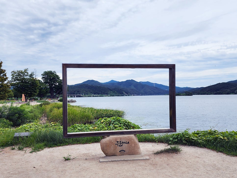 최근 양평 두물머리 에서 가장 사랑받는 명소 중 하나는 바로 액자 포토존 입니다. 나무로 만든 대형 액자 안에 두물머리의 풍경이 그대로 담겨, 마치 한 폭의 그림 같은 사진을 연출할 수 있는데 주말에는 줄이 길게 서있을만큼 사진명소로 유명합니다. 액자 뒷배경에 따라 느낌이 달라지기 때문에 갈때마다 사진 찍고옵니다.