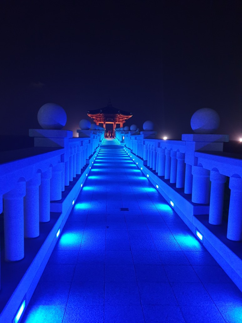 속초 영금정 야경도 멋진데요, 해돋이와 일몰을 감상하기에 최적의 장소 중 하나입니다. 특히 새해의 첫 날에는 수많은 사람들이 이곳에 모여 해돋이를 기원합니다. 하늘이 오렌지와 분홍색으로 물들어가는 모습을 보시면 절로 감탄하게 될 거예요. 또, 일몰 역시 놓칠 수 없는 장면입니다. 해가 바다에 스며드는 순간의 속초 영금정 야경 정말 아름답습니다. 이날 날씨도 좋아서 영금정 야경 둘러보기도 좋았고 바다 한가운데 있는듯한 기분도 즐기기 좋았습니다.