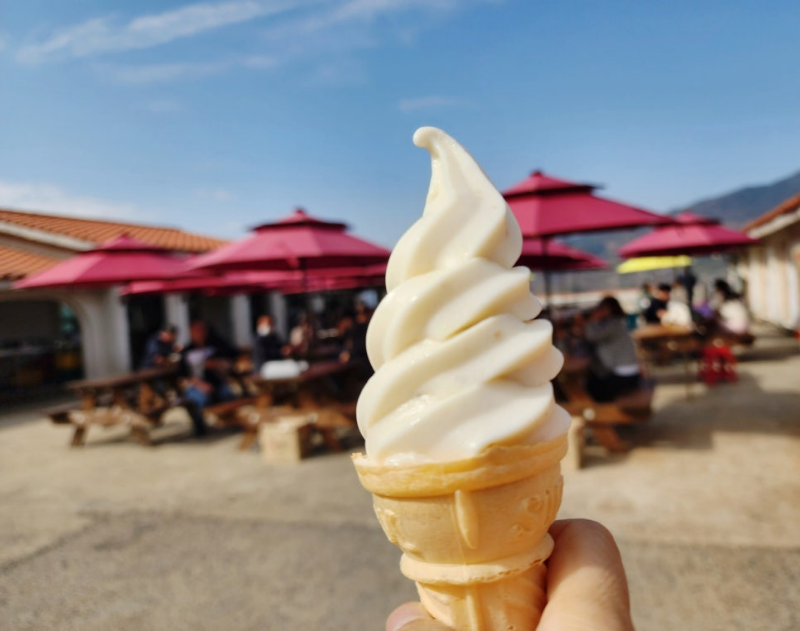 매화마을 위에까지 올라가면 매실음식 파는곳도 있고 매실로 만든 음료와 아이스크림도 판매하고 있어요. 매실 아이스크림 먹었는데 시원하고 달콤하고 새콤하면서도 맛있습니다.